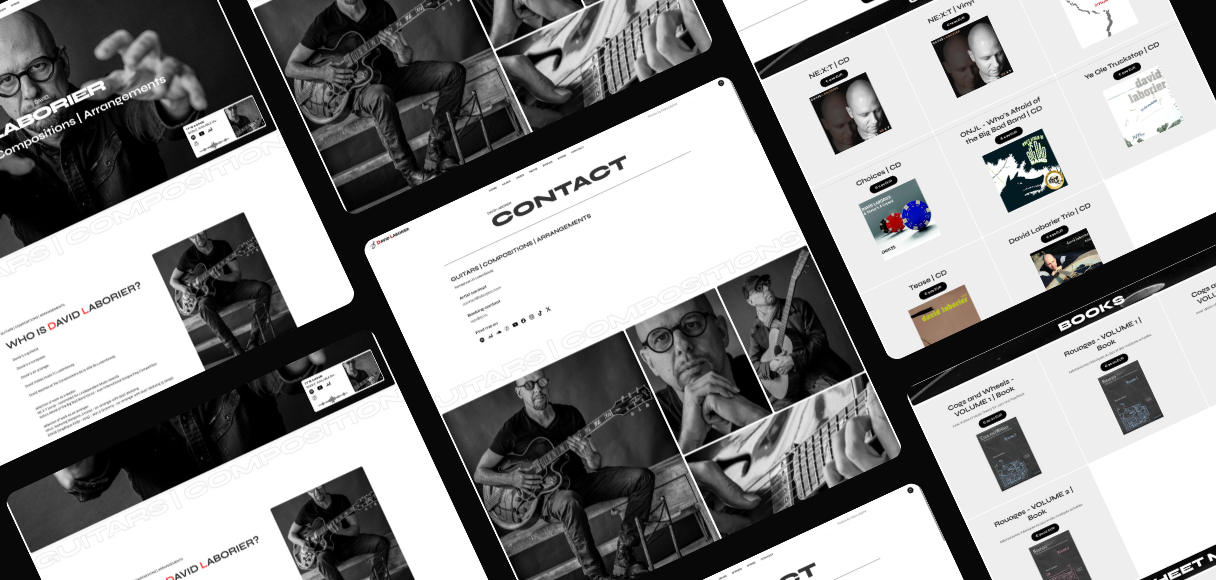 David Laborier, Luxembourg’s guitar-strumming, Grammy-nominated jazz star, needed a website upgrade for LaboJazz. His old site wasn’t hitting the right notes to showcase his jazzy pop-rock vibes or connect with fans. He wanted a fresh hub to share new tracks, cool videos, tour dates, news, and a shop for CDs, music books, and merch.