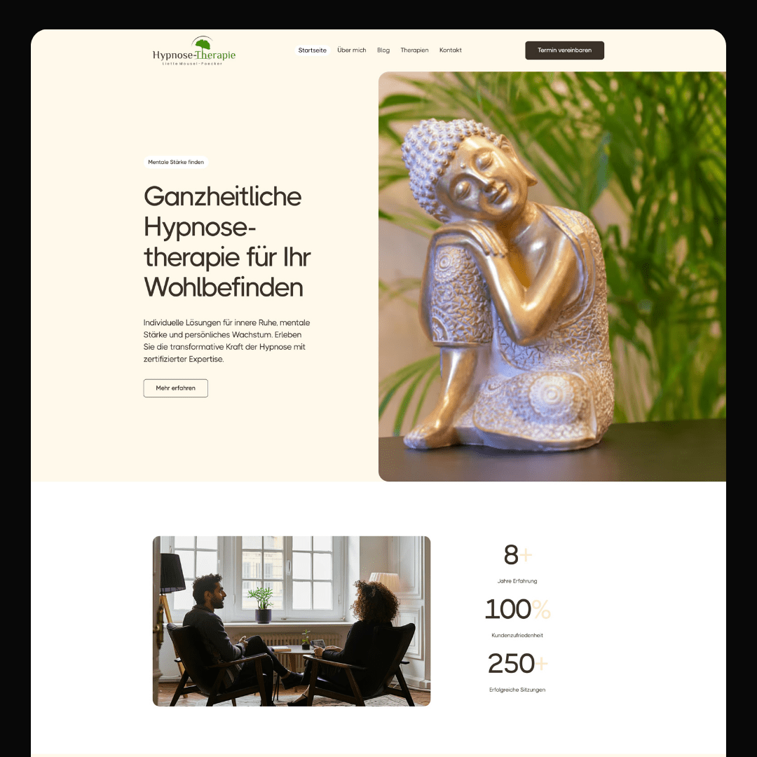 Liette Mousel-Poecker, Luxembourg’s certified hypnotherapist with over 8 years of guiding clients to inner peace and transformation, sought a website refresh for her practice. Her previous site lacked the serene vibe to truly captivate potential clients or showcase her holistic approach to stress relief, smoking cessation, and self-confidence boosts. She dreamed of a digital sanctuary to share mindfulness articles, highlight success stories, enable easy bookings, and foster deeper connections with those seeking balance.